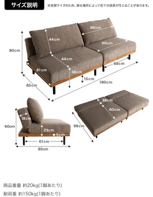 サイズ 幅180cm(90cm+90cm)×奥行98cm×高さ80cm(座面高:38cm)