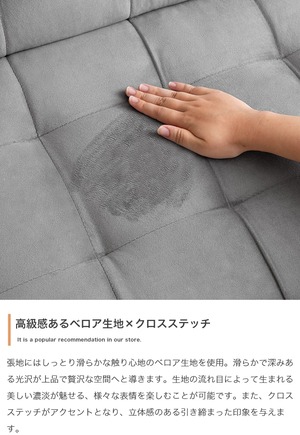 リクライニング可能でマルチに使える『Lillian(リリアン)』1人掛けベロアソファ。背もたれの角度を3段階で調節ができ、楽な姿勢がとれるので、快適なくつろぎタイムを叶えてくれます。脚部が取り外せるロー設計なので、お部屋に圧迫感を与えず、一人暮らしやワンルームにもぴったり。また、2脚揃えるとソファベッドになり、友人や家族が泊まりに来た時用の簡易ベッドとしてや、足を伸ばしてゆったりくつろぐカウチとしても大活躍です。