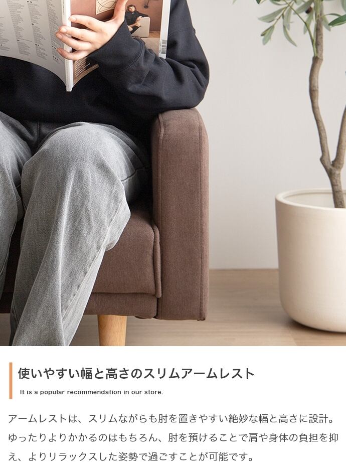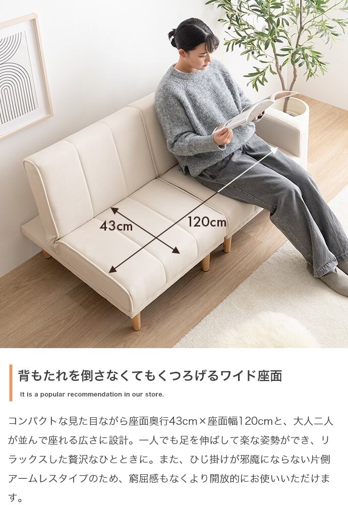 コンパクトながらも快適にくつろげる『Sourire(スリール)』リクライニング式ソファベッド。この1台でソファもベッドも手に入る、ワンルームにも置きやすいコンパクトソファです。背もたれを6段階でお好みの角度に調節でき、楽な姿勢で快適なくつろぎタイムを叶えます。また、コンパクトなロー設計のためお部屋に圧迫感を与えず、一人暮らしやワンルームにもピッタリです。