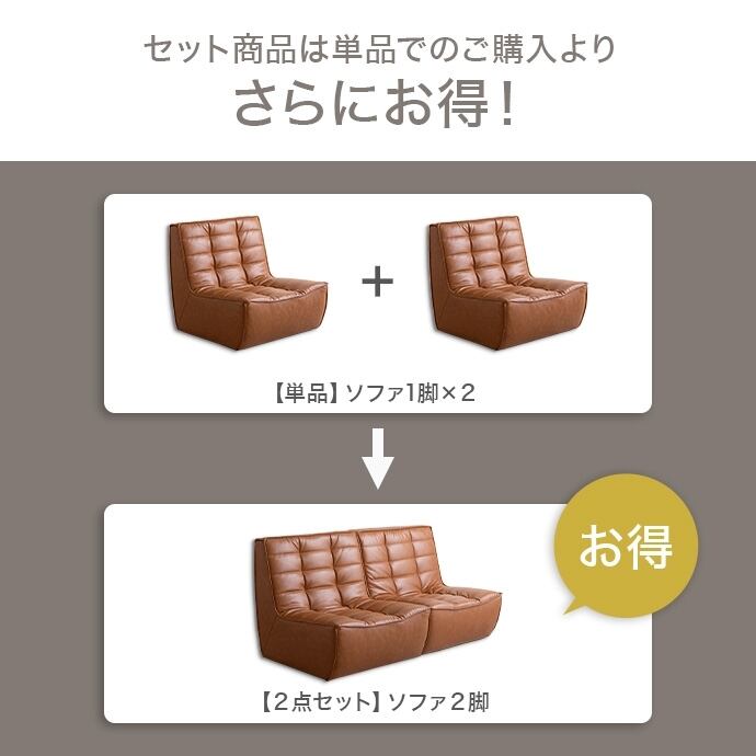 【2点セット】PVCレザーソファ ヴィンテージモダン 北欧スタイル 2704