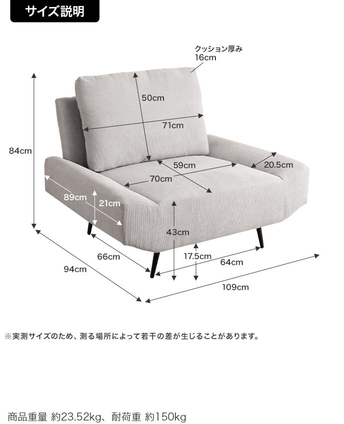 【幅109cm】1人掛けワイドソファ コーデュロイ生地 2704