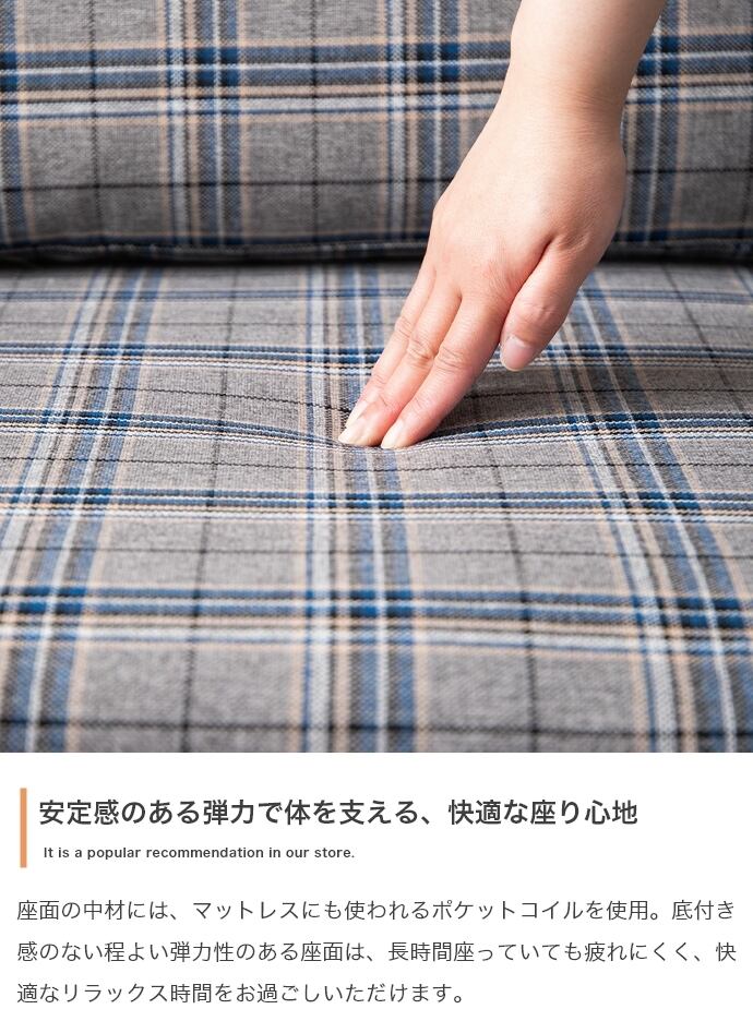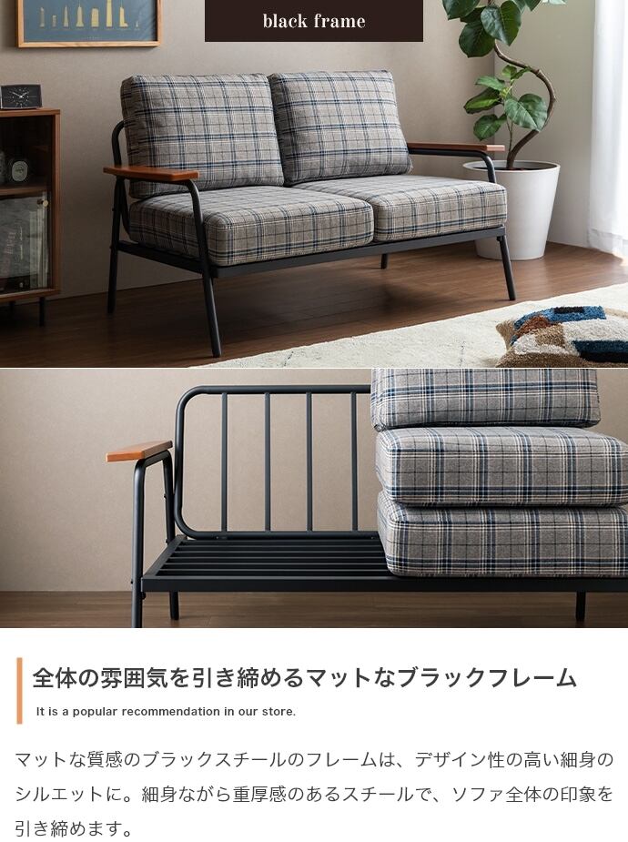 2人掛けチェック柄ソファ ヴィンテージスタイル 2704