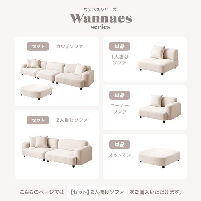 高級感漂うデザインが特徴の『Wannaes(ワンネス)』シリーズの2人掛けソファ。丸みのあるフォルムはお部屋の主役となり、目を惹くデザインです。視覚的な心地よさと無駄のないシンプルデザインは、韓国インテリアや北欧スタイルなどシンプルで洗練された空間に自然と溶け込みます。低めの座面×幅広設計で、お部屋への圧迫感を抑えつつもゆったり贅沢にくつろげるソファに仕上げました。