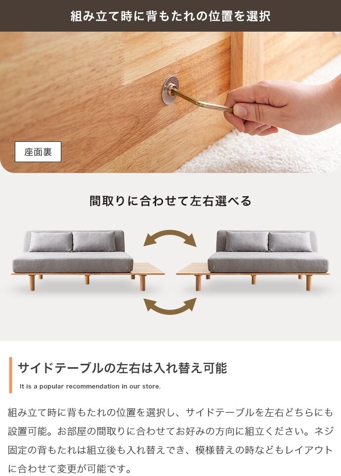 【幅150cm】2人掛けサイドテーブル付きソファ 北欧スタイル 海外インテリア風 2704