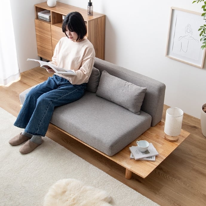 サイドテーブル一体型の『Monica(モニカ) 』2人掛けソファ。手が届く位置に物を置けるサイドテーブルは、お部屋のレイアウトに合わせて左右入れ替え可能。圧迫感を抑えたコンパクトなロー設計で、一人暮らしやワンルームのお部屋にもぴったりです。清潔感とナチュラルな明るさが溢れるシンプルデザインで、北欧スタイルはもちろん、海外インテリア風など幅広いテイストのお部屋に馴染みます。コンパクトながらアームレスでゆとりがあるこだわりのデザインで、ほっと一息つける癒しの時間をお過ごしください。