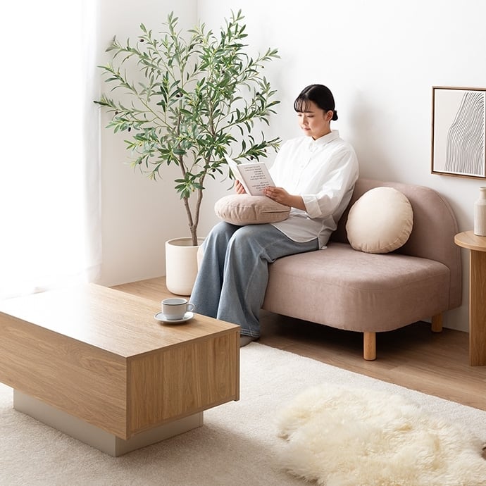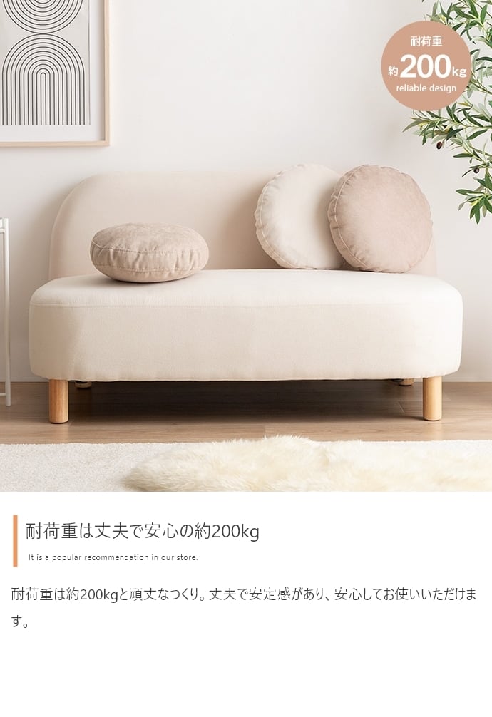 曲線が可愛らしい『Rond(ロン)』2人掛けコンパクトラウンドソファ。コンパクト設計で、1人暮らしやワンルームにお住まいの方にもおすすめです。座面は、奥行き55cmとゆったり使えて、底付き感もないため、長時間座っていても快適。さらに組み立て簡単で届いてすぐ使えるのも嬉しいポイントです。