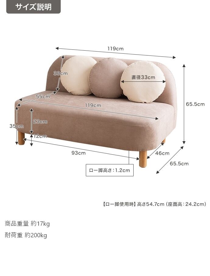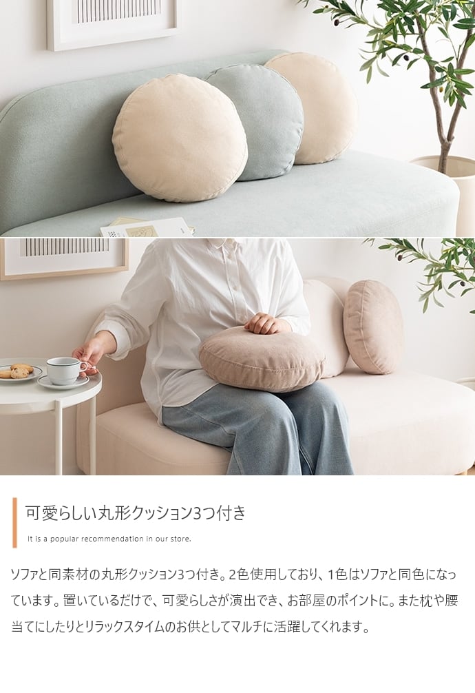 【幅119cm】2人掛けコンパクトラウンドソファ フロアソファ 2704
