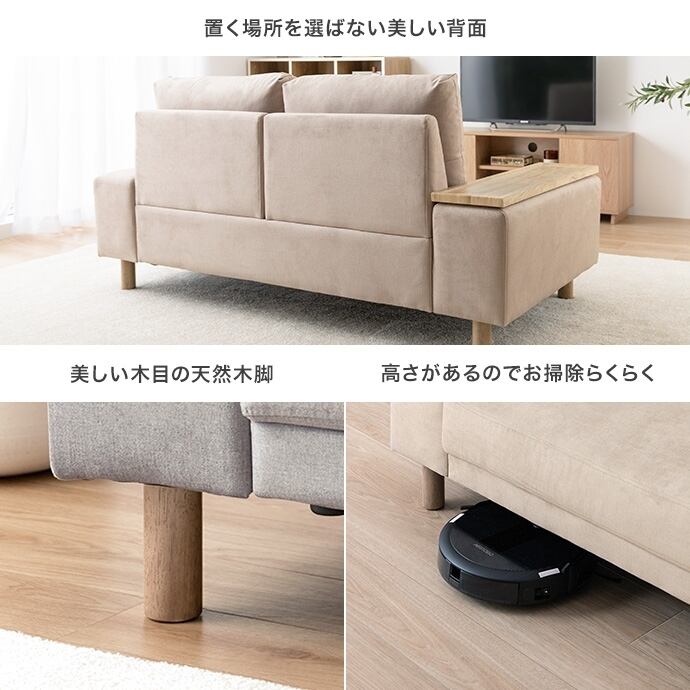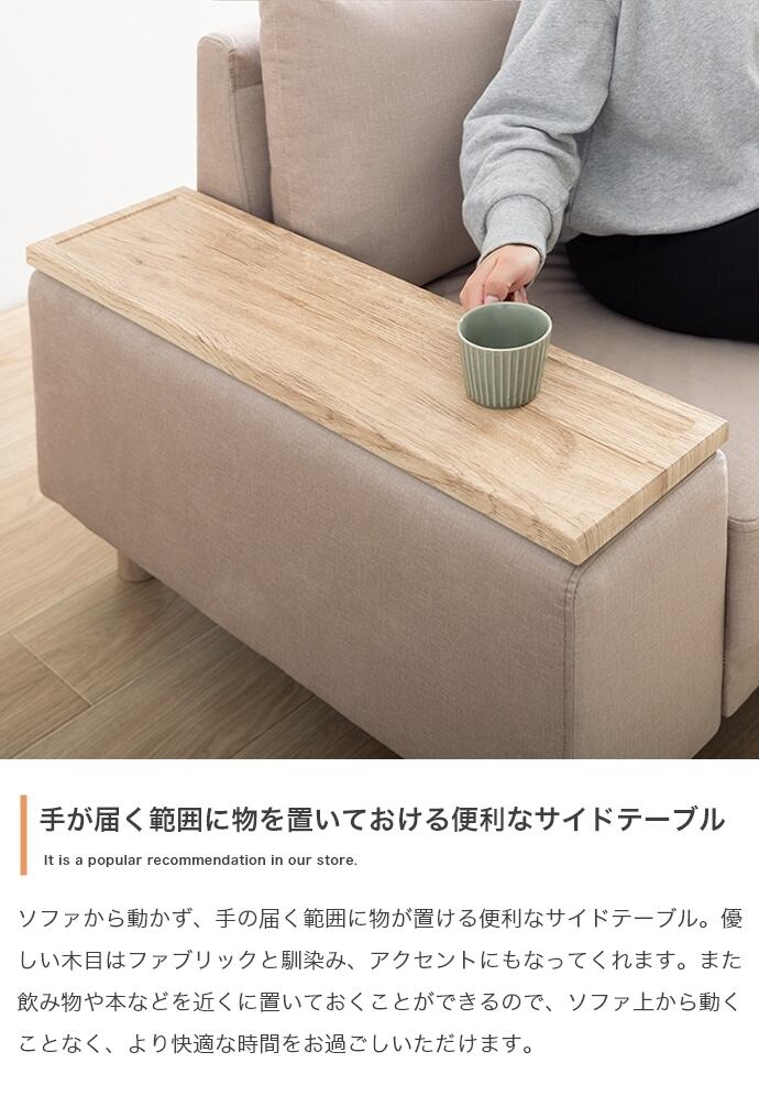 サイドテーブル付き2人掛けソファ 撥水加工 2704