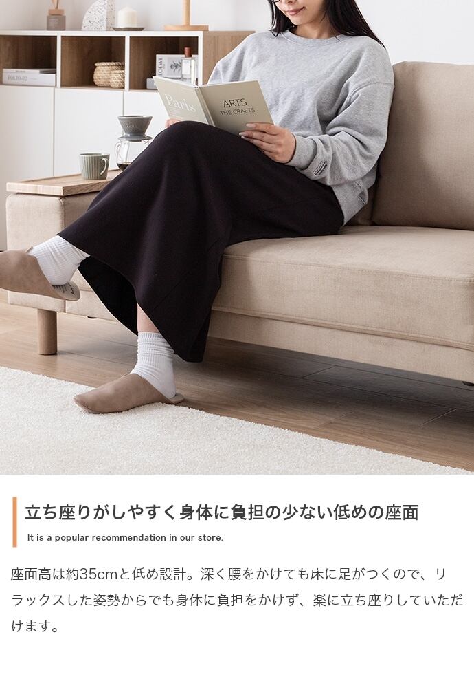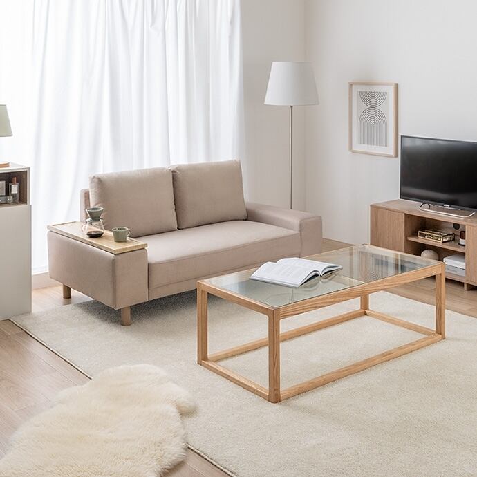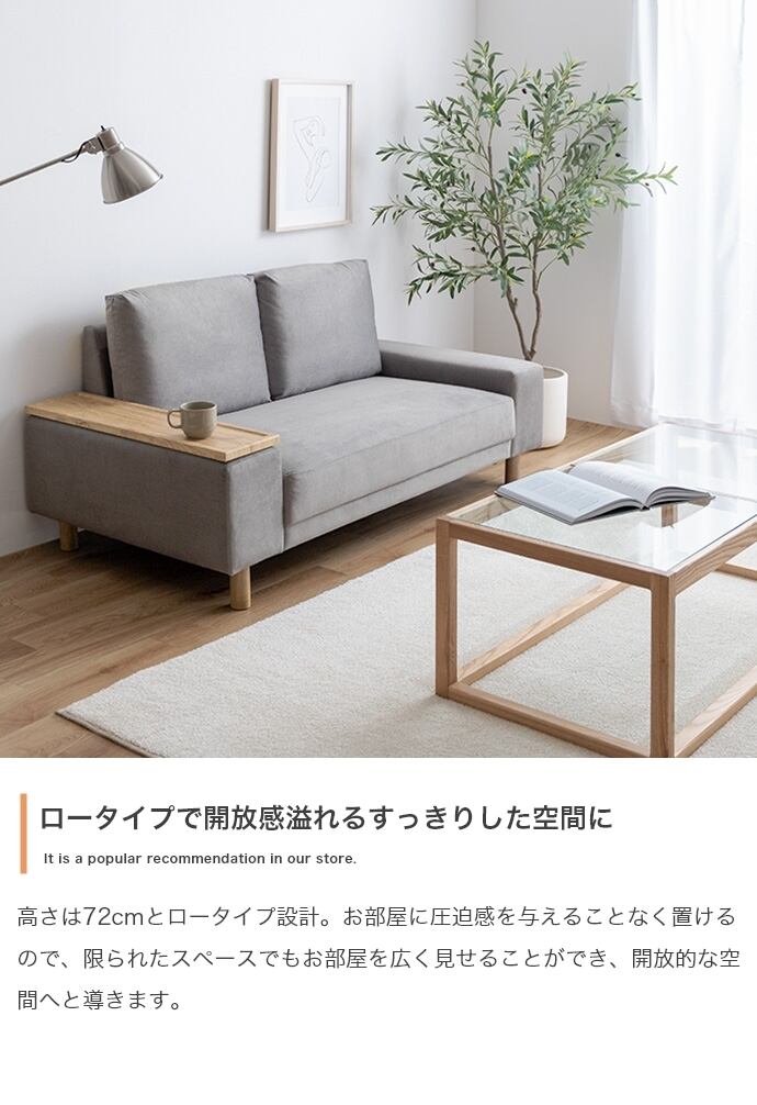 くつろぐ・飲食・寝転ぶの全てがソファ上で完結する『Lilou(リル)』サイドテーブル付き2人掛けソファ。シンプル&ロータイプでお部屋馴染みがよく、お部屋を広く見せたい方にもおすすめです。またサイドテーブルは取外し・左右入れ替え可能でお手入れも簡単。ソファ全体にも撥水加工を施しているので、綺麗な状態で長く使えます。さらに座面は座り心地にこだわっており、長時間座っていても疲れません。