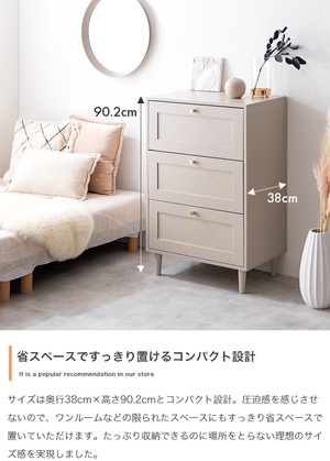 品のある框(かまち)デザインと柔らかなニュアンスカラーが印象的な『Calan(カラン)』シリーズのチェスト。シャンパンゴールドの取っ手と美しい框デザインはお部屋のアクセントとなり、感度の高い海外インテリアのような空間へと導きます。また、柔らかなニュアンスカラーで甘すぎない大人な可愛さもプラス。置くだけでお部屋をセンスアップさせます。