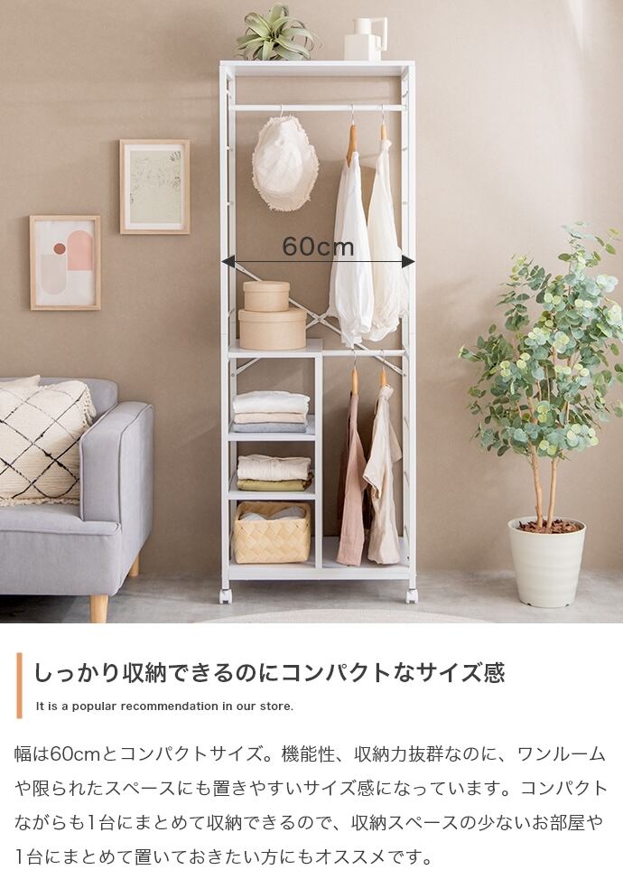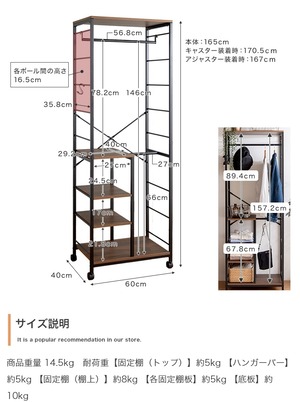 サイズ 幅60cm×奥行40cm×高さ(キャスター装着時):170.5cm (アジャスター装着時):167cm