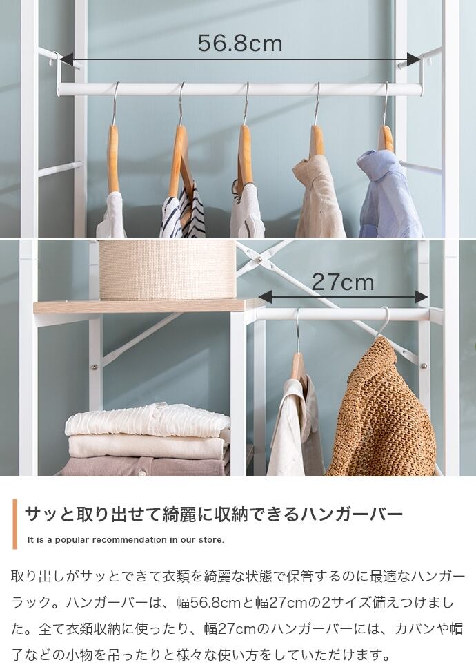 【耐荷重】トップ固定棚:約5kg、各ハンガーバー:約5kg