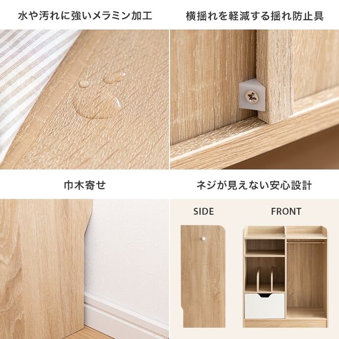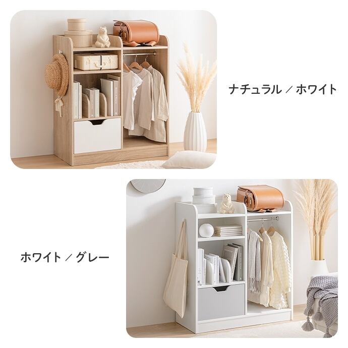 【耐荷重】(天板)約15kg、(各棚)約10kg、(引き出し)約10kg、(ハンガーラック底板)約15kg、(ハンガーポール)約7kg、(フック)約15kg