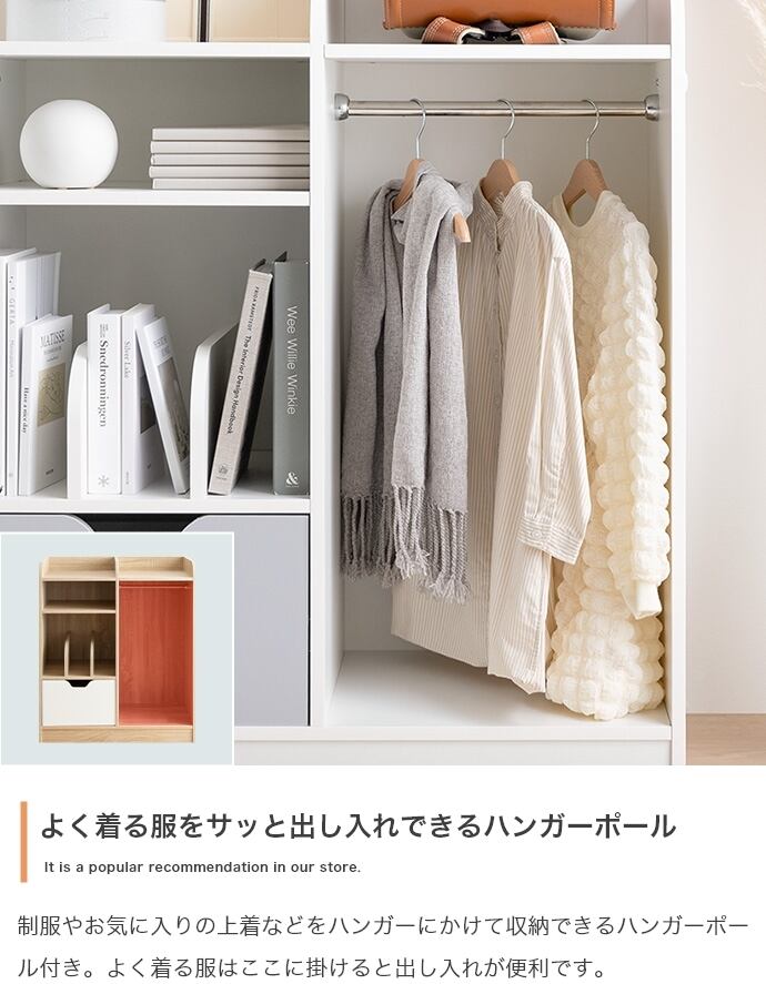 お子様の片づけやすさにこだわった『Pila(ピラ)』マルチ収納付きランドセルラック。ランドセルを置ける天板・オープン収納・本棚・引き出し・ワードローブを備え、お子様の衣類から学用品まで一か所に纏めて収納することができます。収納スペースのエリアを小分けに区切ることで片付けがしやすく、よく使うものをサッと出し入れ可能。シンプルでインテリアにも馴染みやすく、飽きのこない長く使えるデザインです。