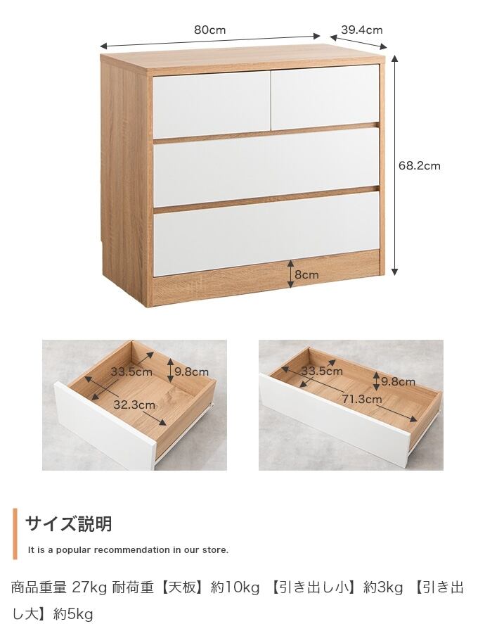 【耐荷重】天板:約10kg、引き出し小:約3kg、引き出し大:約5kg
