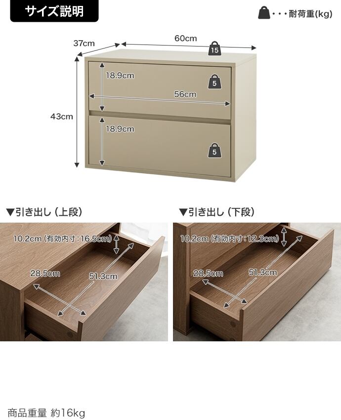【耐荷重】天板:約15kg 、引き出し:各約5kg