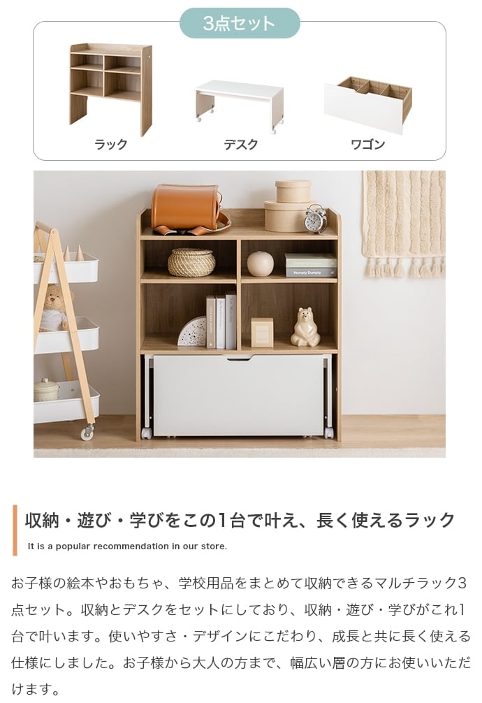 【幅80cm】マルチ収納・デスク付きランドセルラック 2704