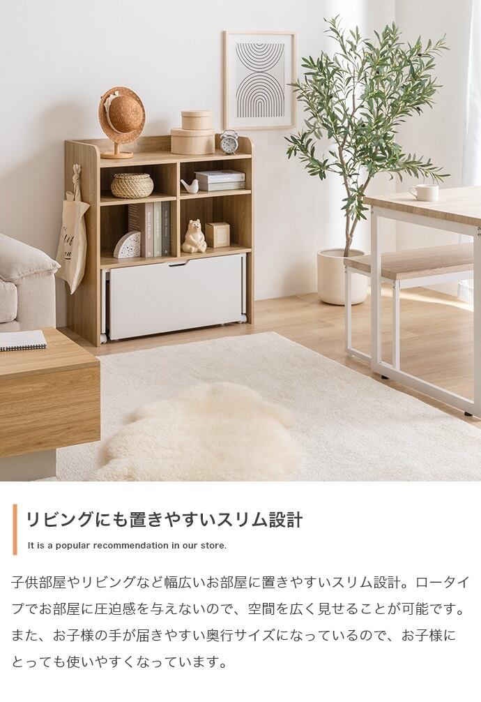 お子様のおもちゃや絵本、学校用品をまとめて収納可能な『Pila(ピラ)』シリーズのマルチ収納・デスク付きランドセルラック。ラック・デスク・ワゴン収納がセットになっており、これ1台で収納と学習スペースの両方を確保できる仕様にしました。また、お子様専用スペースとして設置することで、お子様の自発的なお片付けを誘導し、楽しくお片付けをする習慣へと繋げることができます。さらに、スリムサイズでリビングに置くのにもちょうどいいサイズ感です。