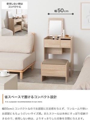 【幅50cm】コンパクトドレッサー スツール付き 2口コンセント付き 2704