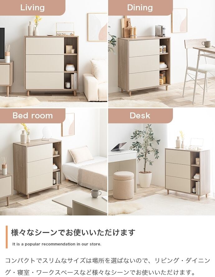 【幅73cm】バイカラー棚付きチェスト ナチュラル モダン 2704