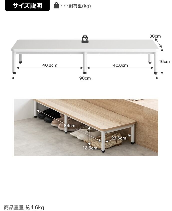 【幅90cm】1段シューズラック ステップ台 昇降サポート 2704