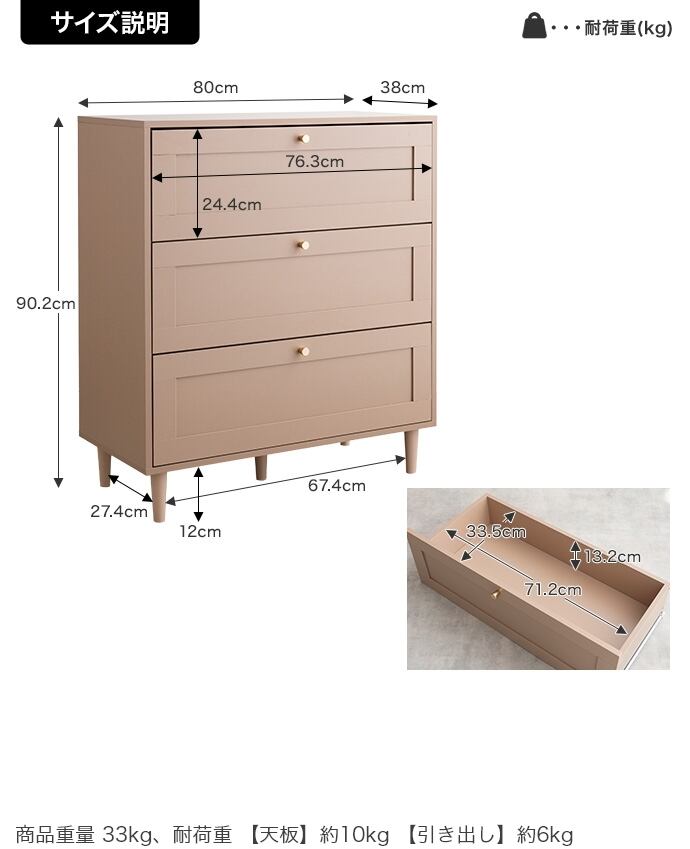 【耐荷重】天板:約10kg、引き出し:約6kg