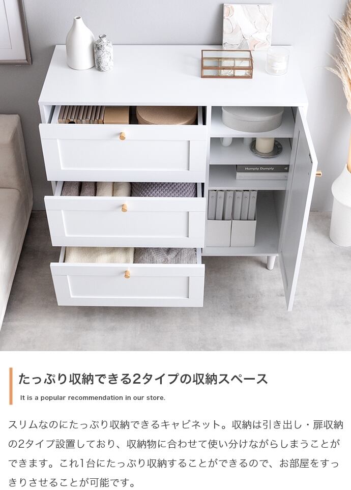 【幅90cm】キャビネット 海外インテリア 框(かまち)デザイン 2704
