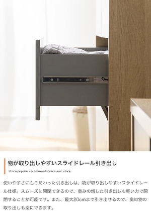 【耐荷重】天板:約50kg、引き出し(小):約10kg、引き出し(大):約15kg