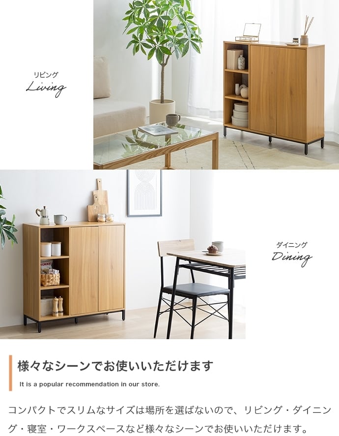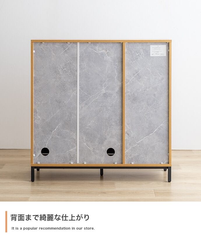 ヴィンテージ感のある木目調とストーン調の組み合わせが、お部屋をおしゃれに演出する『Pesci(ペッシ)』シリーズのキャビネット。扉収納内の23段階で動く4つの可動棚はお好みの高さに調節ができ、スペースの無駄なく収納することができます。また、コンパクトで置きやすいサイズ設計なので、一人暮らしやワンルームにお住まいの方にもピッタリです。