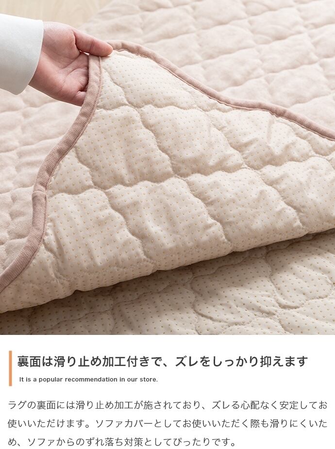 ※床暖房・ホットカーペット対応。ただし、滑り止めが床に移る可能性があるため定期的に点検し、位置を変えてご使用ください。