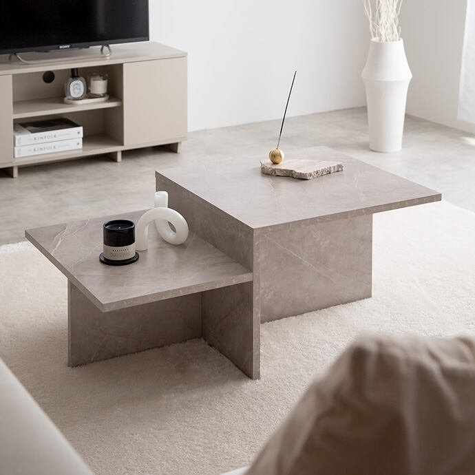 直線的なデザインと段違いの天板が目を惹く『Freya(フレヤ)』センターテーブル。まるで美術品のような幾何学的なデザインは、置くだけでお部屋をセンスアップします。段違いの2つの天板は、片方を作業用に、片方をディスプレイ用にと使い分ける事ができ、自分好みにアレンジしやすいのも魅力的です。