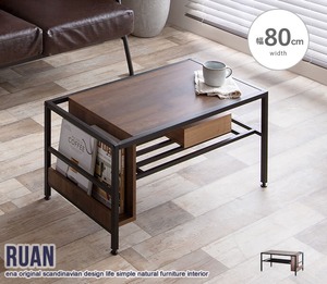 重厚感溢れるブラウンカラーの木目とブラックスチールが、大人の雰囲気を漂わせる『Ruan』の収納付きセンターテーブル