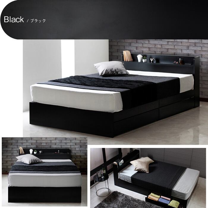 [D] 棚・コンセント付き収納ベッド ローベッドフレーム単体 RUES ルース 1101