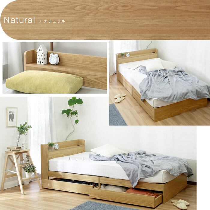 シンプルなデザインでも実用的な多機能をしっかり備えたベッドフレームです。