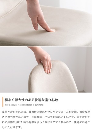 美しいベロアと滑らかな曲線の組み合わせが特徴的な『Panada(パナダ)』シリーズのダイニングチェア。脚までベロアを纏わせた統一感あるデザインは、置くだけでお部屋に洗練された上質な印象を与えます。また3D座面を採用しているので、座り心地も抜群です。優雅で快適な時間をお過ごしいただけます。