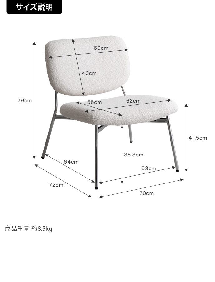 サイズ 幅70cm×奥行72cm×高さ79cm(座面高:41.5cm)