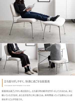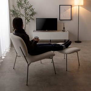 上質な空間でリラックスできる、デザイン性の高い『Loop(ループ)』スツール。モコモコ生地×シルバー脚のデザインは、空間のアクセントになります。また座面は、傾斜のあるフォルムで沈み込みの少ない幅広・奥広設計。シリーズのラウンジチェアと合わせて、オットマンとしても使用可能です。デザイン性だけでなく、座り心地も抜群で心地いい時間をお過ごしいただけます。