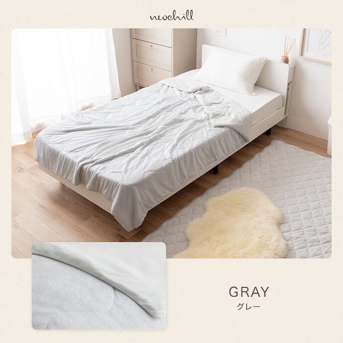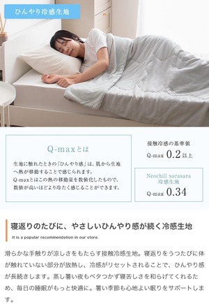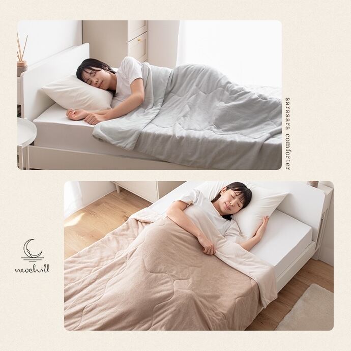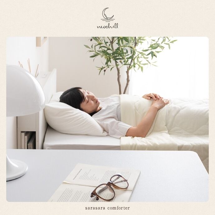 毎日のリラクゼーションタイムを、より心地よい安らぎの時間に変える『Neochill(ネオチル)』シリーズのsarasaraリバーシブル掛け布団。接触冷感生地とパイル生地のリバーシブル仕様で、暑い日も肌寒い日も快適に過ごしていただけます。また身体にやさしくフィットする柔らかさで、リラックスタイムをもっと心ほぐれるひとときに。忙しい毎日に癒しを添えてくれます。