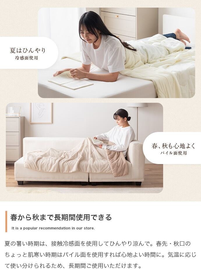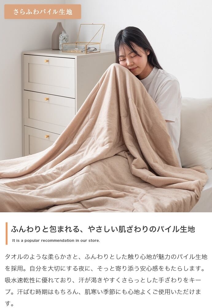 【140cm×190cm】sarasara リバーシブル掛け布団 リバーシブル(表:パイル生地・裏:冷感生地) 丸洗い可 2704