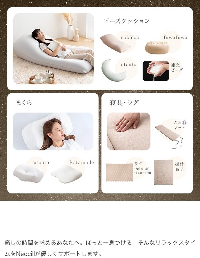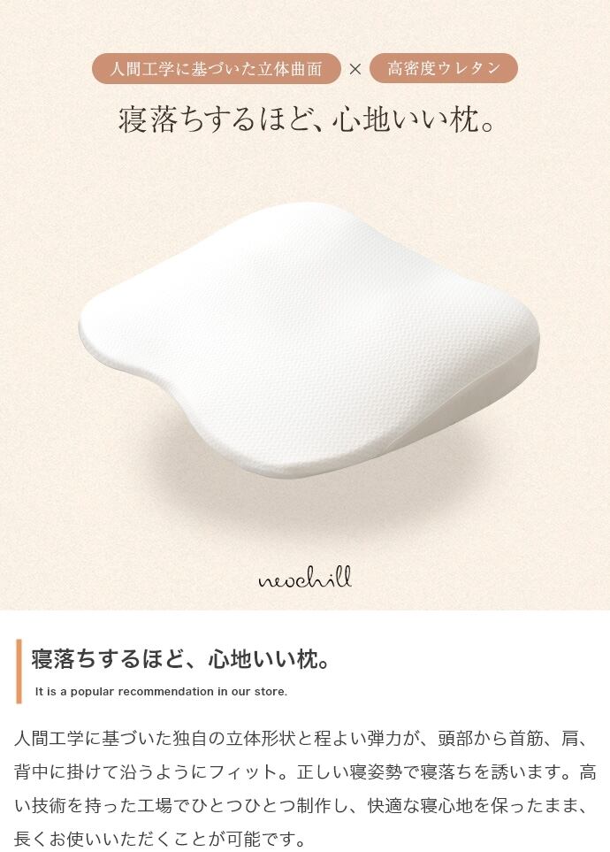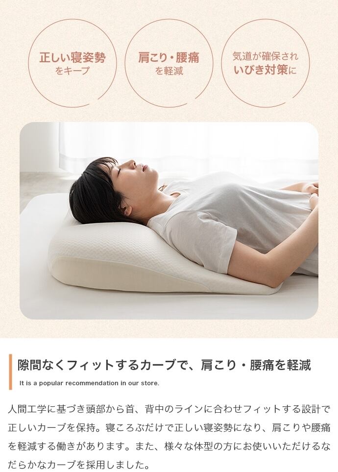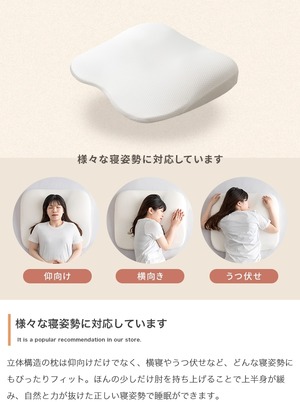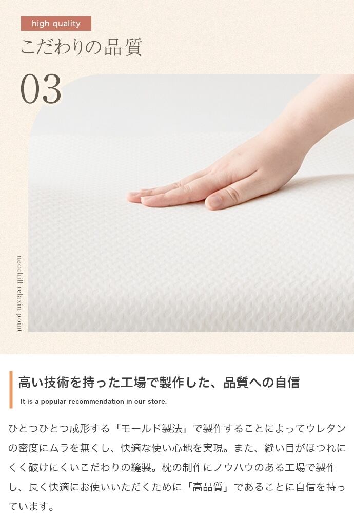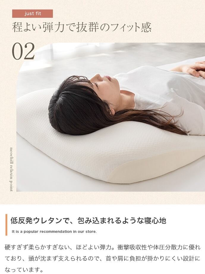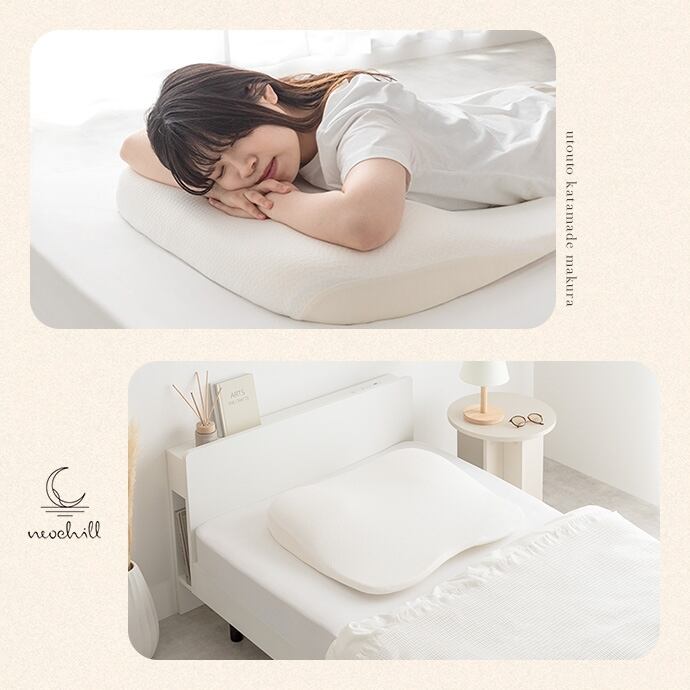 毎日のリラクゼーションタイムを、より心地よい安らぎの時間に変える『Neochill(ネオチル)』シリーズの、utouto katamade枕。人間工学に基づいた独自の立体形状が頭部から首筋、肩、背中の7点をしっかり支え体圧を分散し、正しい寝姿勢で寝落ちを誘います。頭頚部を高くすることで呼吸がしやすくなり、いびき対策にも。また、ワイドサイズ設計なので寝返りが多い方や寝相が悪い方でも枕から頭が落ちることなく、広々開放的な寝心地です。
