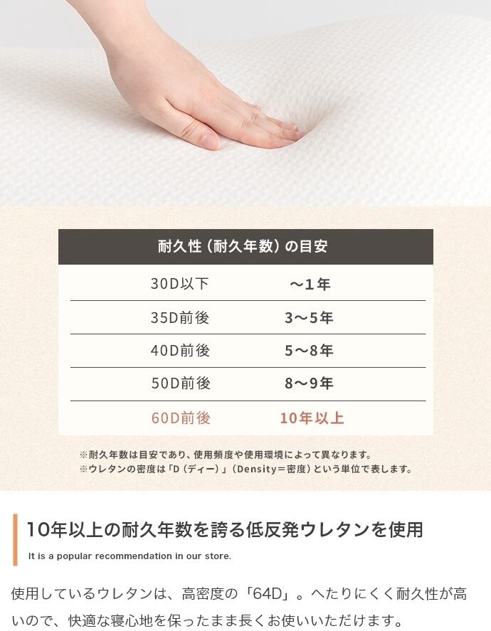 本体:ポリウレタン(密度64.3D・モールド製法)