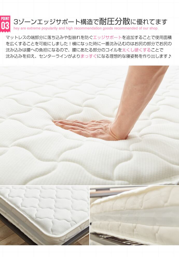 快眠ベッド マットレス。ポケットコイルマットレスは1つ1つのコイルが“点で体を支える”ので、しなやかな寝心地を体感できます。身体のラインにフィットし、マットレスにかかる“耐圧を分散”しますので“横揺れが少ない”のが特徴のベッド マットレスです。また、「8万回」の過酷な耐久テストをクリアした、安心の品質は、あらゆる世代の方へ快適な睡眠を実現いたしました。【ダブルサイズ】