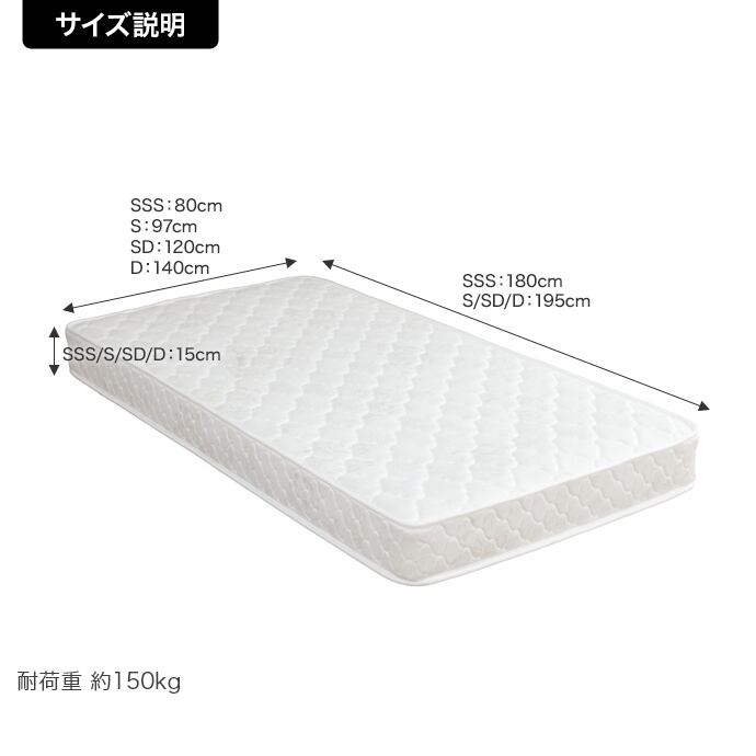 サイズ 幅:97cm×長さ:約195cm×高さ:15cm(コイル数:216)