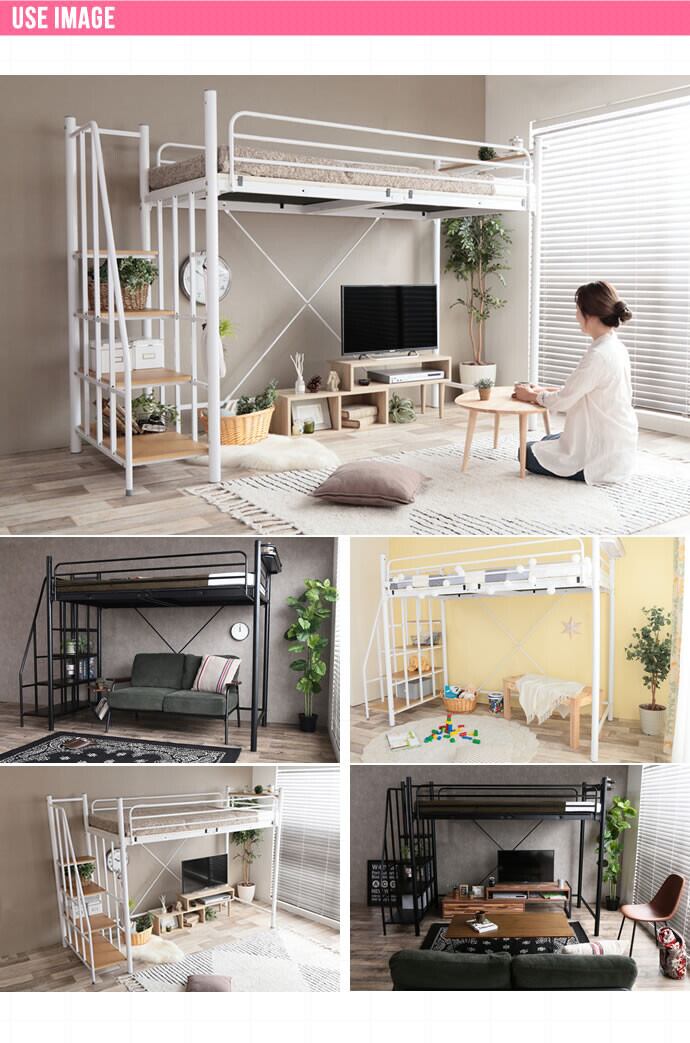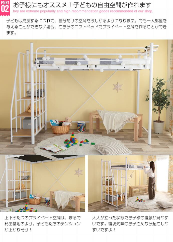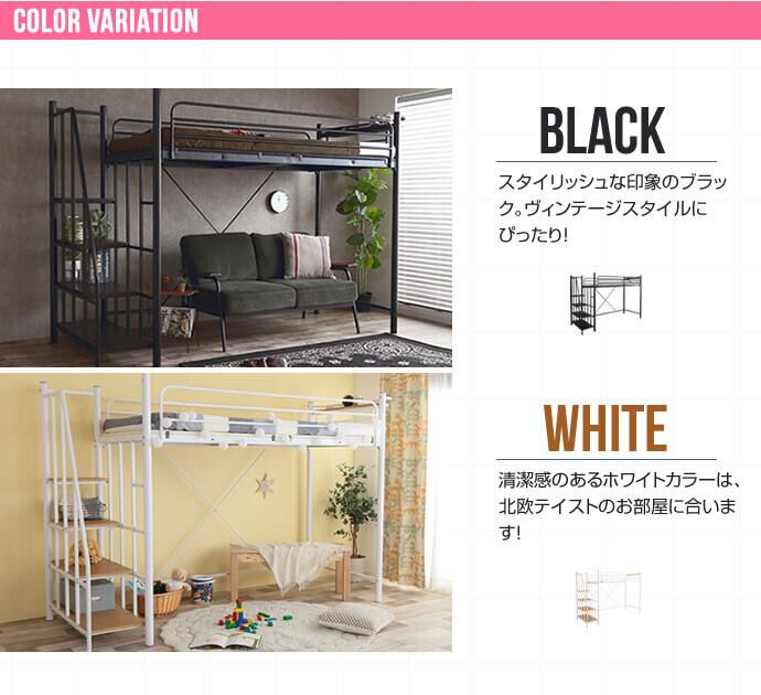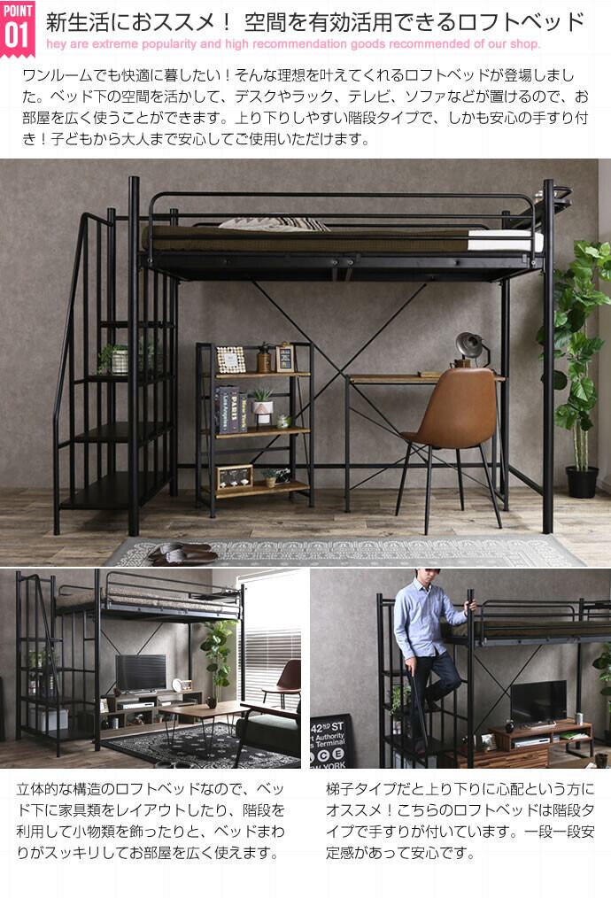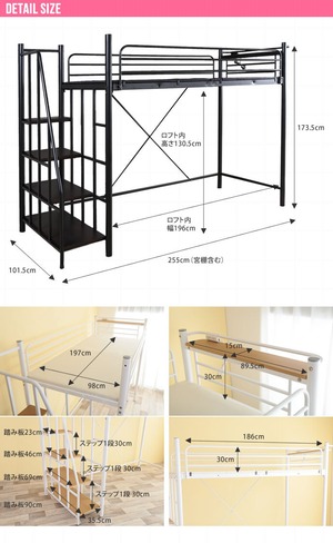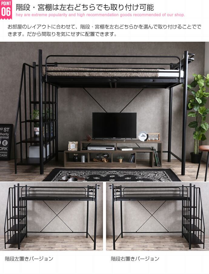 【シングル】階段付きロフトベッド パイプベッド 2704