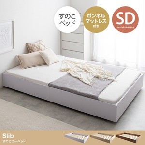 【セミダブル】すのこローベッド(ボンネルマットレス付き) ノイズレスデザイン 通気性抜群 2704