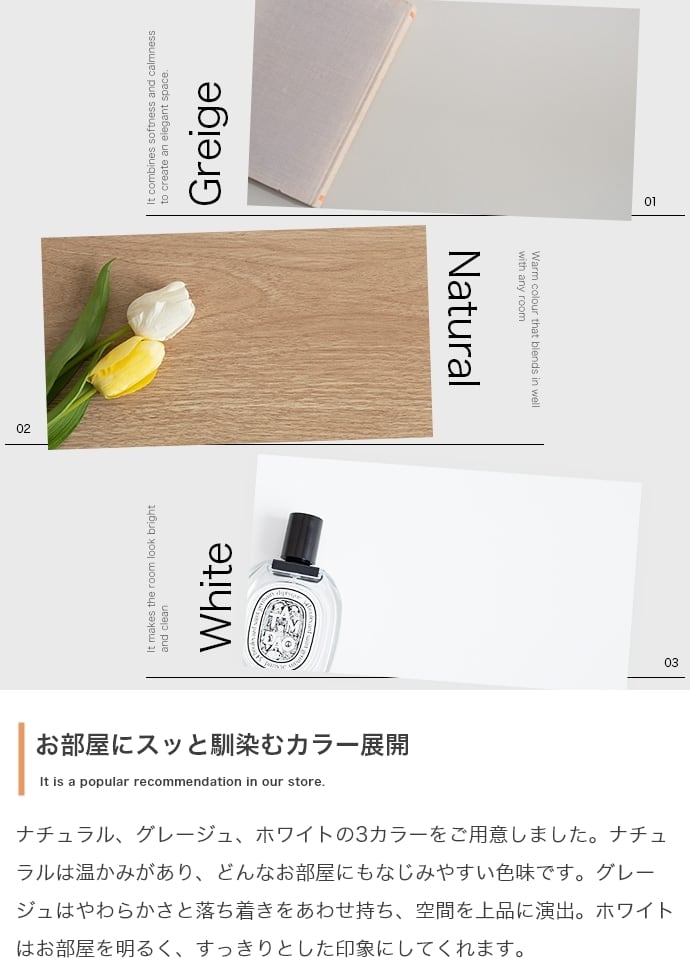 空間をすっきり見せる、ノイズレスにこだわった『Sehen(ゼーエン)』シリーズのテレビ台。余計な装飾の無いシンプルなフォルムと、外側からネジ穴が見えないデザインです。また、配線がスマートに収納できる工夫など、すっきりと見せる「ノイズレス」にこだわっています。一人暮らしやワンルームにも置きやすいコンパクトサイズなので、様々なお部屋に馴染みます。