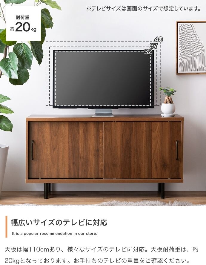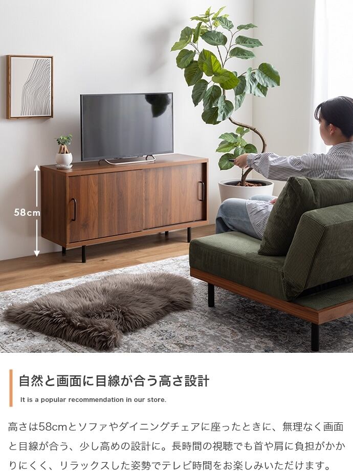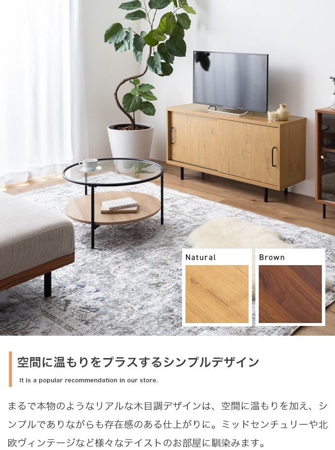 【幅110cm】テレビ台 木目調 ミッドセンチュリー 北欧ヴィンテージ コードスリット・コード穴付き可動棚 2704