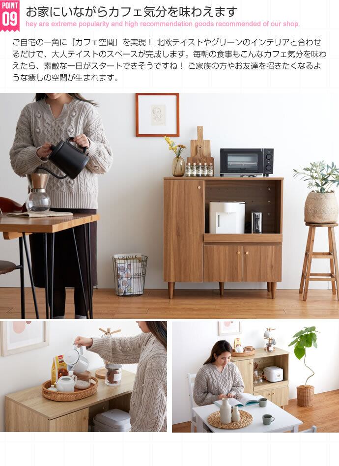 【幅85cm】脚付きレンジ台 木目調 ナチュラル 北欧モダン スライドトレー 可動棚 2704