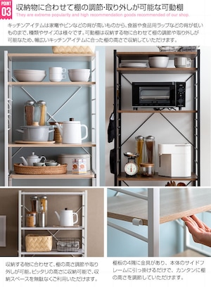 【幅60cm】レンジラック 可動棚 スライド収納 S字フック・アジャスター付き 2704