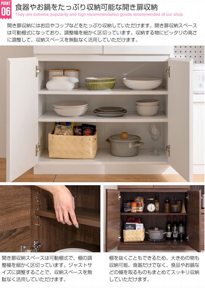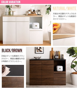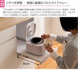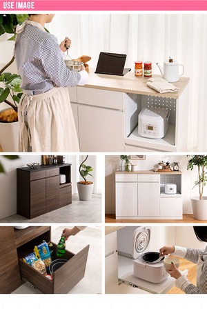 【幅120cm】キッチンカウンター ノイズレスデザイン 可動棚 スライドトレー 2口コンセント付き 2704